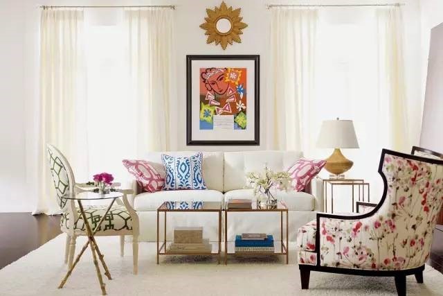 窗帘的重要性,就不用说了。不仅不可或缺的装饰,更是室内遮光蔽尘的重要工具。客厅的窗帘,该选什么花色,那就得看你的墙面、沙发和抱枕的颜色,选和墙面颜色一致的准不会错,也可以选和沙发、抱枕颜色一致的款式。卧室的窗帘,除了考虑花色,还得照顾居住者的喜好和性格。如果是儿童房,就得选择颜色相对鲜艳,富有童真童趣的花色;如果是中老年人的房间,就要考虑选择素朴稳重的颜色和花纹。