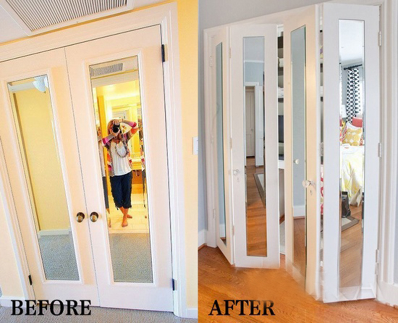 5.在这个寸土寸金的社会中,小户型的房子比较普遍,所以为了节省空间,家中一般会把穿衣镜镶嵌在衣柜上,但是这样的设计会让整体感觉过分单一,太过保守。但如果将普通的对开式设计变成折叠式衣柜门则将整体感提升,通过镜子映射出来的层次感让空间变得格外宽敞。