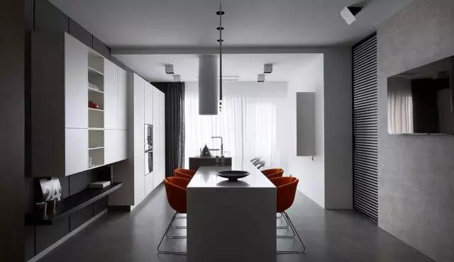 很多中国人因为传统观念,在别墅装修时选择封闭式厨房,虽然从某种程度上避免了油烟,但同时也带来了缺乏互动和交流的弊端,开放式厨房很好地规避了这个问题,即使不会一起做美食,但也因为能在抬头的瞬间看见家人,暖意便瞬间从心底升起。朋友来家里聚会也不用再担心因为厨房面积不够而挤不进来。