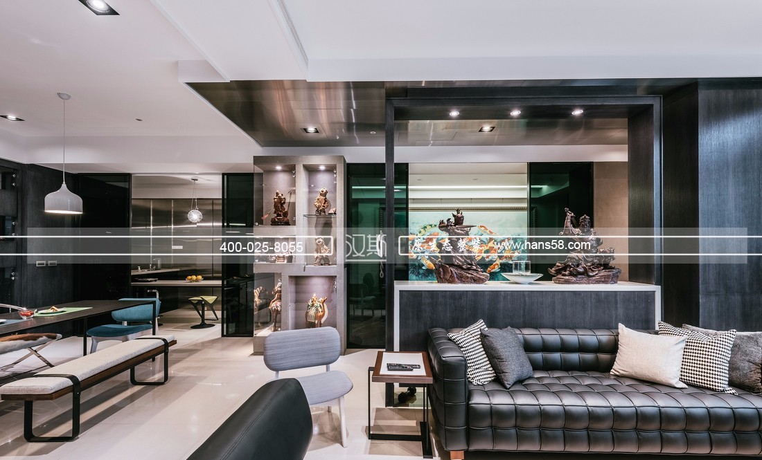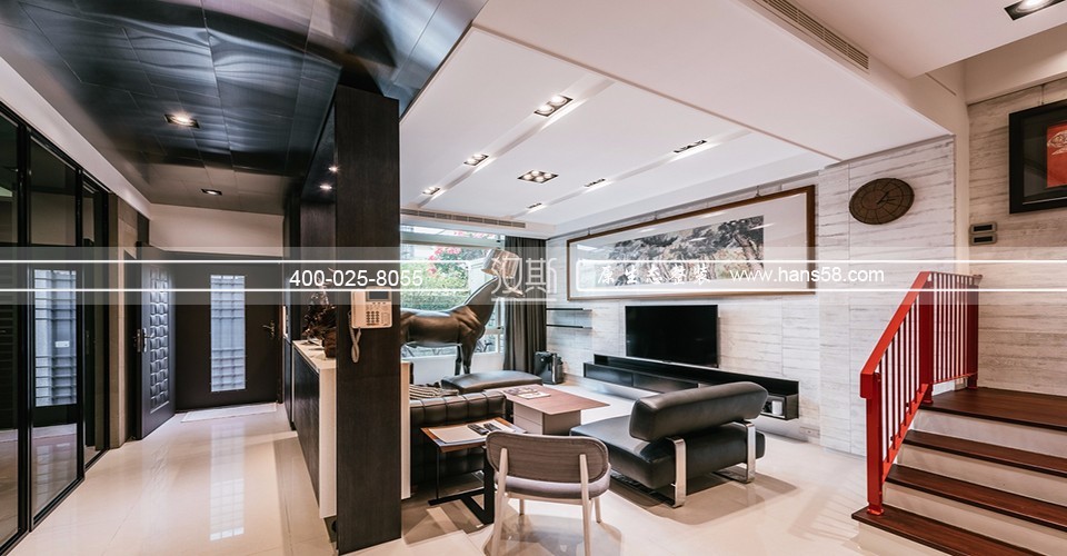 此案例是意大利汉斯设计事务所根据业主喜好设计出来的,混搭风格别墅装修应该是当前人们比较喜欢的。这套案例业主比较喜欢收集一些古玩或者展示性的艺术品,可以看得出来整套别墅看上去艺术气息非常强。整个别墅初始规划时即要求重点,1.收纳足够,2.考量展示品的摆设,3.要求带有现代简约中不失精致,4.汽车能停进屋内。别墅最大的好处就是空间大,连停车场都省掉了。