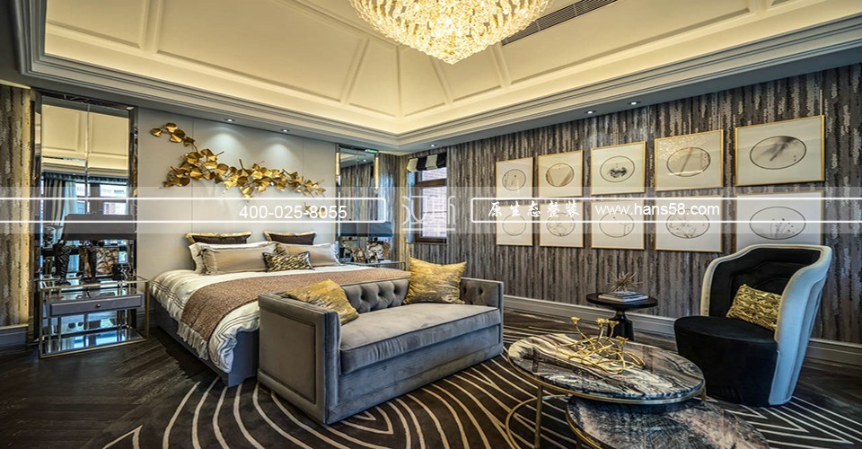 此案例是上海典型的法式风格别墅装修。法式风格装修整体透露出一种浪漫的气息,不管是从外观的奢华还是软装的高贵,都是经过意大利汉斯设计事务所设计师精心挑选的。此别墅的业主是很有身份的人,金色调的搭配很能凸显其贵族的气息。