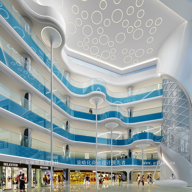 设计概念源于南朗红树林崖口湿地公园,通过“树”这一元素直接融入空间,将这一元素形态进行抽象以塑造壹加壹独有的形式语言。又以各个生态格局构建每层不同的商业业态氛围。整体空间又融入了南朗红树林崖口湿地公园“湿--水”的概念。将树与水进行共生,构建整体湿地架构,辅以各层的主题共同形成商场综合体的多元性和可变化性的形态格局。