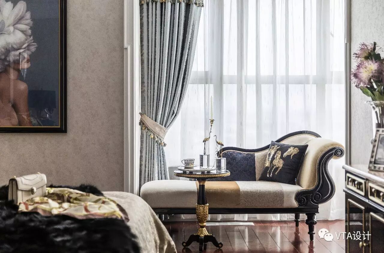 无论是家具还是配饰均以其优雅、唯美的姿态,平和而富有内涵的气韵,描绘出居室主人高雅、贵族之身份。