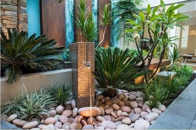 当岩石设计于别墅景观庭院中,允许了最小的植物种植,同时搭配其小型花草,便可以创建一个繁茂的亚热带花园。