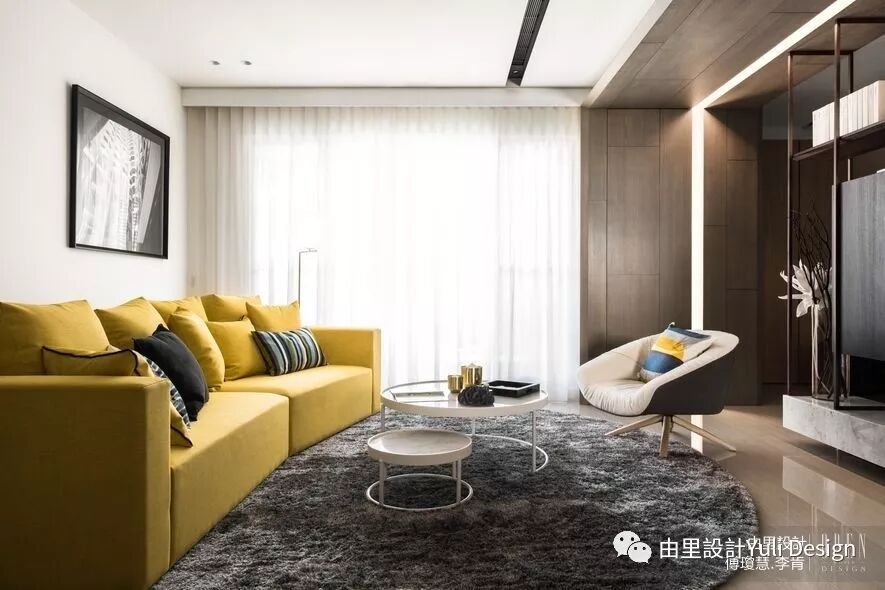 得獎作品:《都會心療癒》以實品屋設計出發,傅總監透過《都會心療癒》展現場域使用的極致可能。在坪數有限的公領域當中,藉由電視牆及區塊走向的巧妙安排,劃分出橫向並排的起居多功能區,及垂直走勢的餐廚區塊;搭配身兼輕隔間的電視牆,將不必要的空間線條剷除盡淨,保留了開闊流通的生活動線和視野。此外,畫面中的暖黃沙發更讓觀者精神為之一震,設計師特地挑選最能表徵起居意涵的物件——「沙發」為重點色彩妝點之處,使之從清爽的環境基調中脫穎而出,成為掀開住宅休憩主題的最佳索引,更猶如暖手陽光,療癒每顆渴望喘息的辛勞心靈。